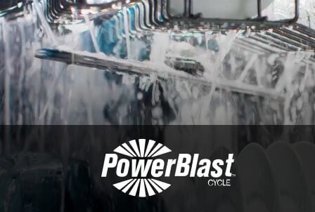 The PowerBlast® cycle combines high-pressure jets, increased water temps and hot steam work to scour away stubborn food.