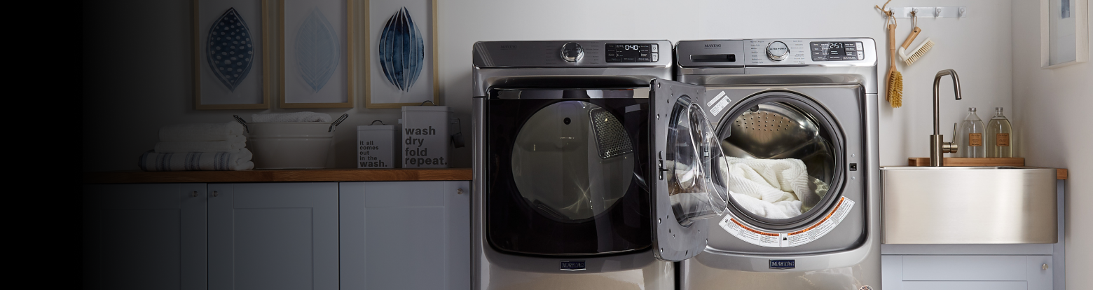 Large capacity dryers come in both gas and electric variants so you can choose the heat source that’s right for you and your home. Before you purchase a large capacity gas or electric dryer, it’s important to compare both types so you get the best option for both your laundry set up, and your drying needs. When purchasing a large capacity dryer, it is a good idea to match it with a large capacity washer and vice versa. Note: the overall capacity of a large washer is smaller than a large dryer because loads do not require as much space to wash as they do to dry. If you’re looking to pair your washer and dryer, Maytag® makes it simple.