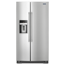 The Maytag® Side-by-Side Counter-Depth refrigerator is 36” wide, has full length freezer storage and 21 cu. ft. of storage capacity.