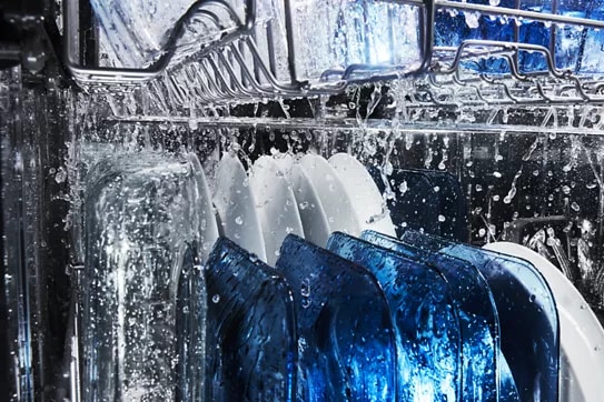 Scour away stubborn messes like peanut butter and dried-on pet food. With the PowerBlast® cycle, high-pressure jets and increased water temperatures work together to clear off dishes, so you don't have to.