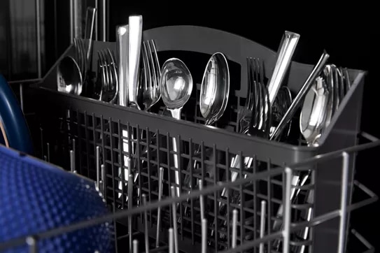Quick Dry Basket has water repellent technology that shields the silverware basket to boost drying, making your cutlery ready-to-use straight from the basket.