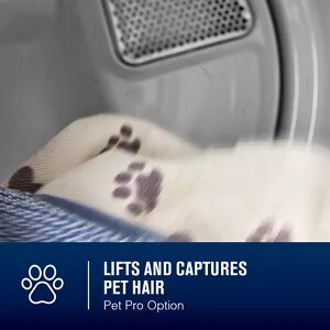 The Maytag® Pet Pro dryer traps and removes loads of pet hair from clothes. The Pet Pro option lifts and captures pet hair from clothes and traps it in the lint trap. Extra Power boosts drying power to get thick fabrics drier the first time,* while Advanced Moisture Sensing helps evenly dry loads.