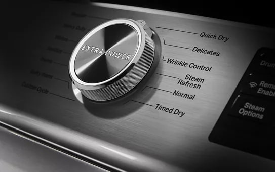The Extra Power button boosts drying power on any cycle by extending time, heat and tumbling. One push helps prevent underdrying by getting thick fabrics, pockets and seams drier the first time.