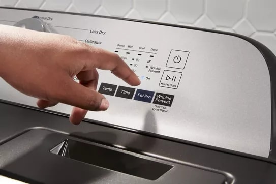 Don’t worry about forgetting to take laundry out of the dryer. The Wrinkle Prevent option tumbles clothes for up to 150 minutes after the cycle ends to help prevent wrinkles from forming.