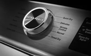 The Extra Power button boosts drying power on any cycle by extending time, heat and tumbling. One push helps prevent underdrying by getting thick fabrics, pockets and seams drier the first time.