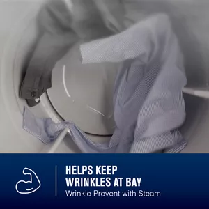With the Wrinkle Prevent option with Steam, the dryer tumbles your clothes for up to 150 minutes after the cycle has ended to keep wrinkles at bay.