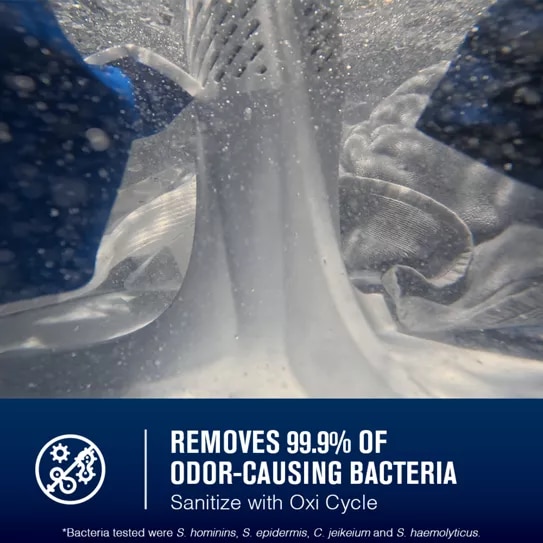 Sanitize Cycle with Oxi removes 99.9% of odor causing bacteria*