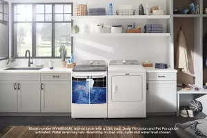 Get a clean you can see with the Maytag® Pet Pro top load washer. This washing machine for pet hair removes 5x more pet hair* with the Pet Pro Filter. Spot treat, rinse or soak clothes with this washer with a built-in faucet and get more water when you want it with the Deep Fill option.