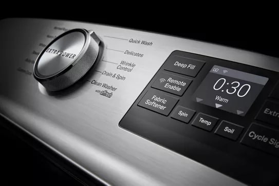 The Quick Wash cycle cleans small, lightly soiled loads in 30 minutes with extra high spin speeds, pairing nicely with the Quick Dry cycle on matching Maytag® dryers to get your clothes ready in no time. (Based on a 3-lb load)